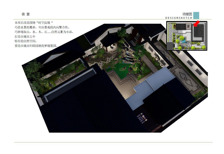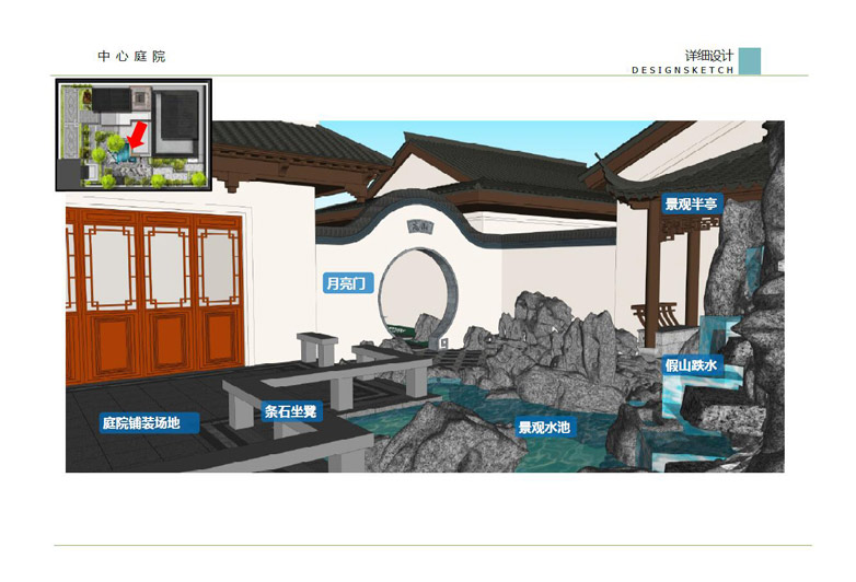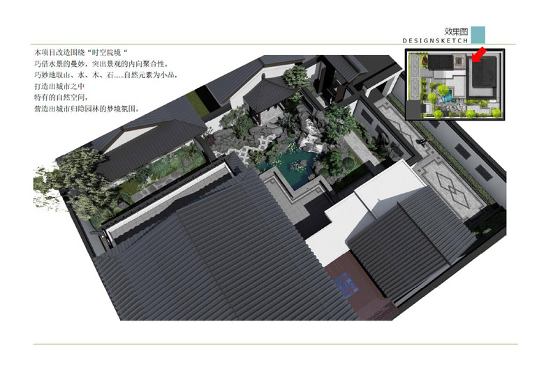 師法自然,融于自然,順應自然,表現自然——這是中國古代園林體現“天人合一”民族文化之所在,是獨立于世界之林的最大特色,也是永具藝術生命力的根本原因。中式景觀設計借鑒中國古典園林的造園手法,結合現代的景觀元素,共同營造豐富多變的景觀空間,達到步移景異、小中見大的景觀效果。