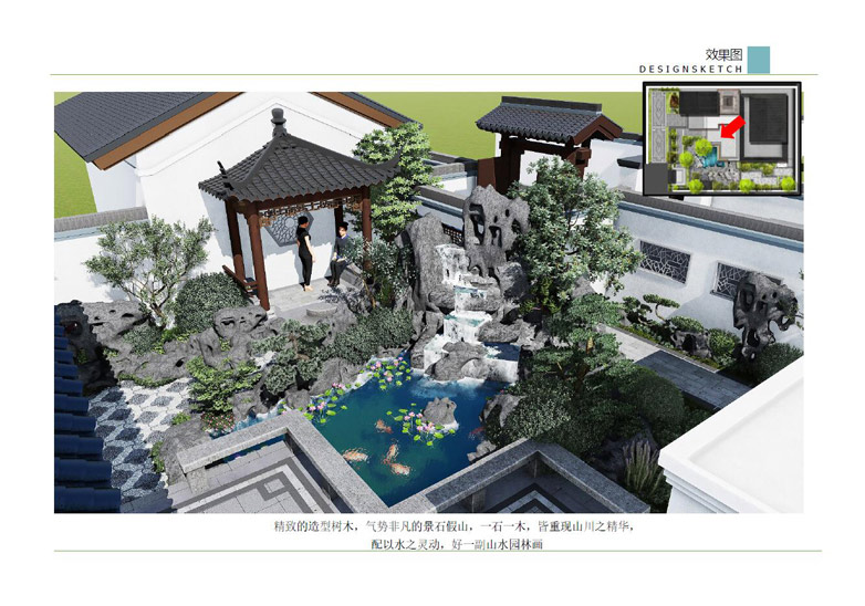 頤和山莊44-04景觀由翟素國設計,要求中式園林設計淡泊、恬靜,含蓄的藝術特色,并收到移步換景,漸入佳境,小中見大等觀賞效果。施工周期為25天,按時保質完成。