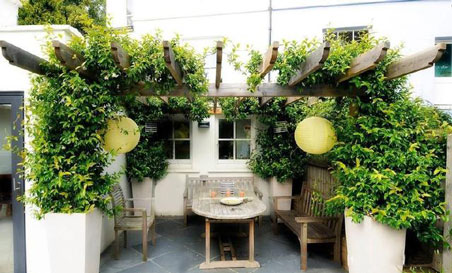 1)衣食住行是人們生活較基本的需要,其中有一句俗話是這樣說的“民以食為天”,從這就不難看出人們對食的看重,若是別墅庭院的面積夠大,可以設置一個室外餐廳,用木質格柵做頂,在四周稍稍栽種一些葡萄,當葡萄的藤蔓爬滿格柵時,在此處休息,聊天喝茶,也是別有一番風味。