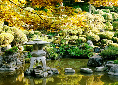 花園常常將山石構(gòu)成石景,配以石燈籠和植物組景等。你可以將這樣一個(gè)花園理解為河流中的巖石,或傳說(shuō)中的神秘小島,但若僅從美學(xué)角度考慮亦堪稱絕作;它對(duì)組群、平衡、運(yùn)動(dòng)和韻律等充分權(quán)衡,其總體布局相對(duì)協(xié)調(diào),以至于稍微移動(dòng)某一塊石便會(huì)破壞該庭園的整體效果。