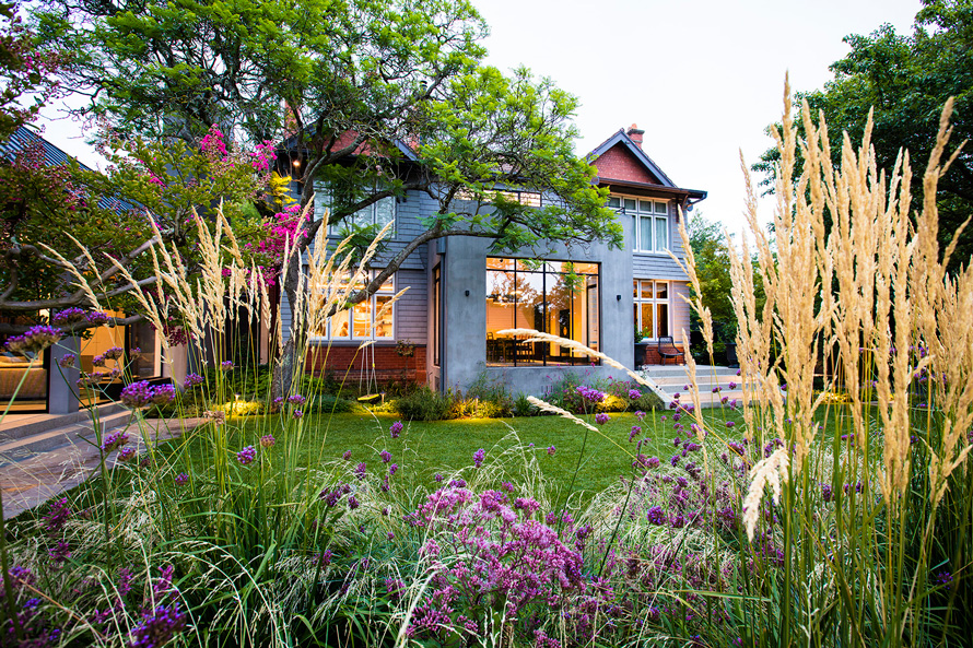 4、巧妙增強空間感:壁爐架上方的白色通透格柵就從 某種程度上增加了空間進深,視覺上擴展了花園的 面積。